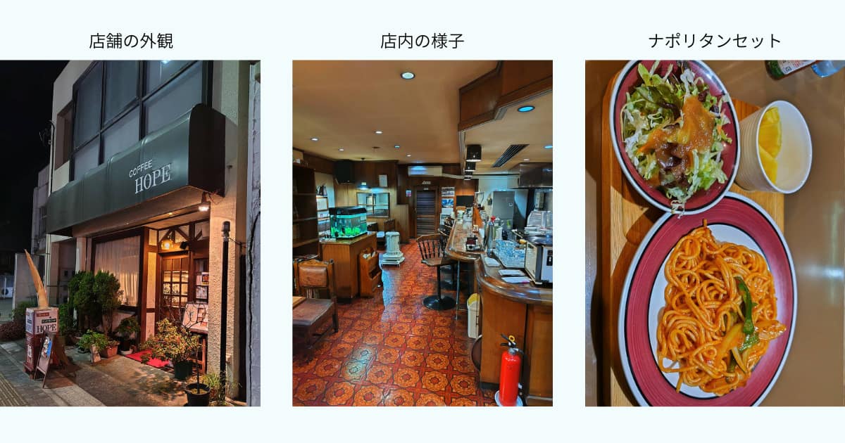 西那須野駅から徒歩2分の純喫茶【Coffee Hope】に訪問。ナポリタンセットを食べてきました。