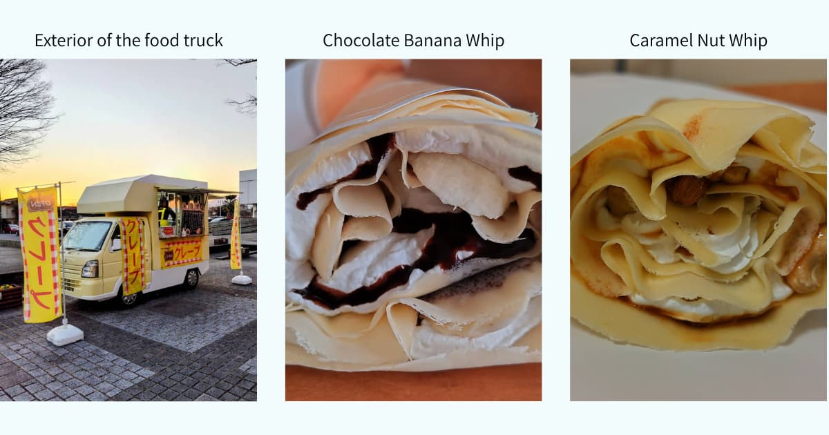 I stopped by the crêpe food truck “Bretagne” at the plaza in front of the Nishinasuno Government Building and bought a “Chocolate Banana Whip” and a “Caramel Nut Whip.”