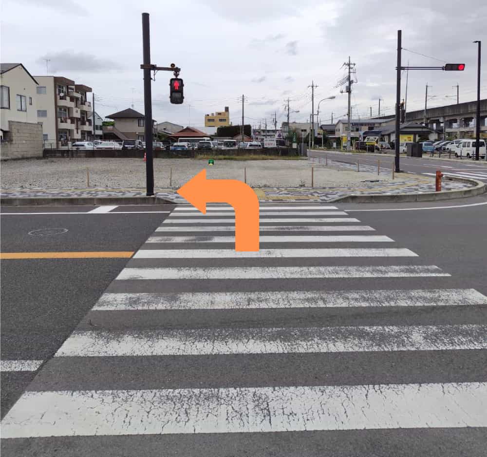 黒磯駅前交番の前の横断歩道を渡り右折することを示す写真