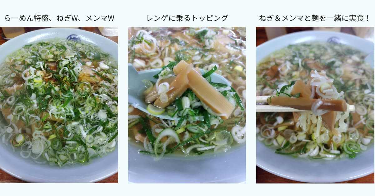 今回は思い切って特盛にし、トッピング(ねぎ&メンマ)もW(ダブル)で注文!