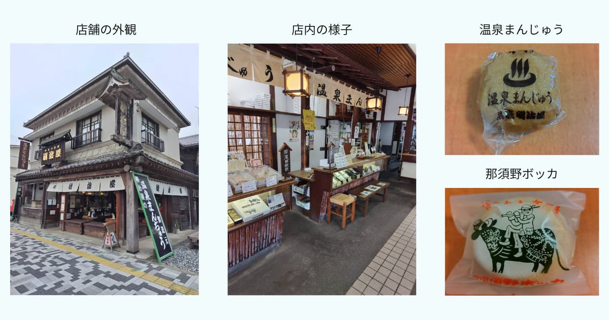 温かい「温泉まんじゅう」と冷たい「那須野牧歌」を分けて渡してくれたのが嬉しかったです。